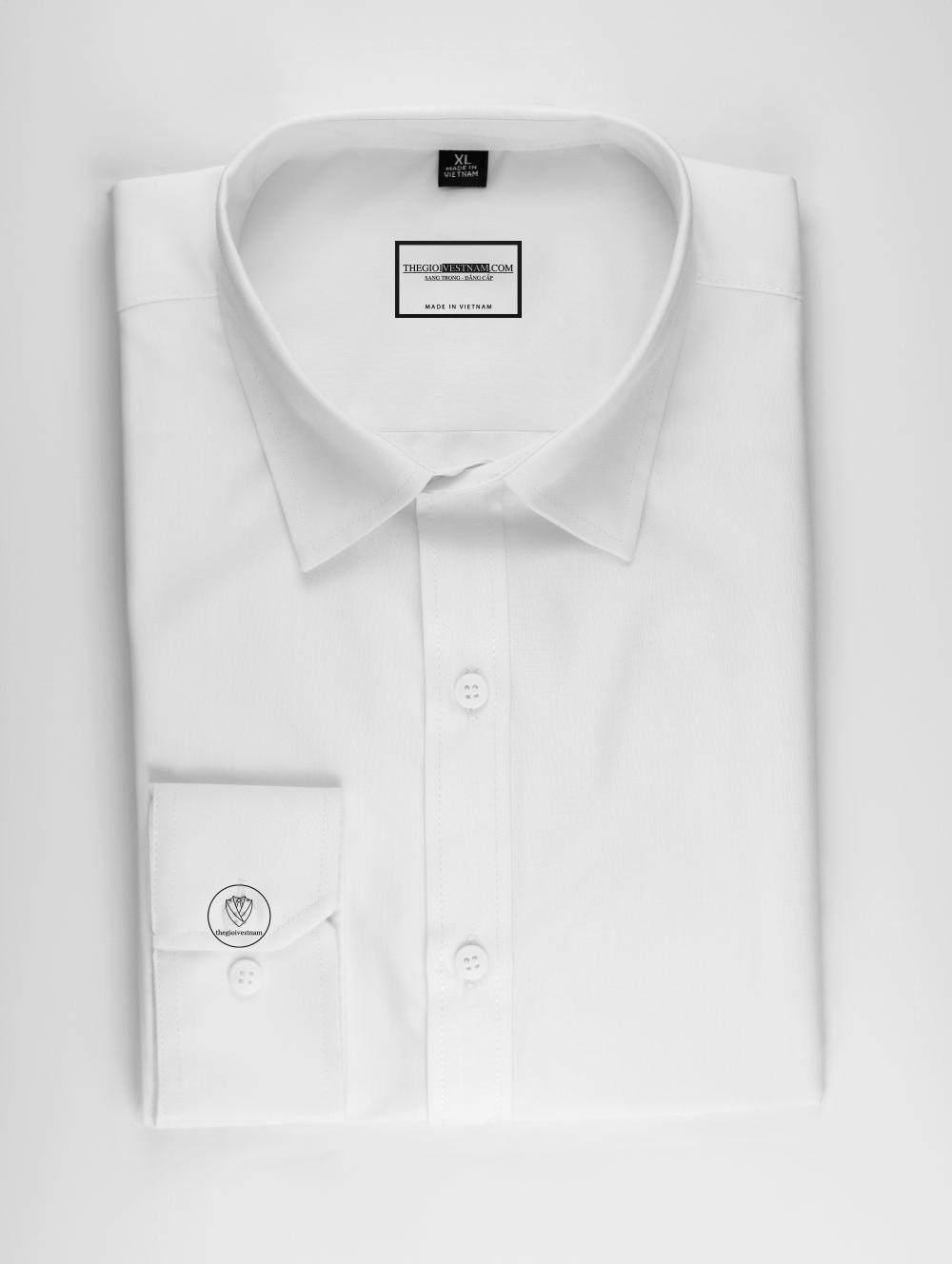 Áo sơ mi trắng nam tay dài với form dáng slimfit vừa phải, phù hợp cả trung niên và thanh niên.