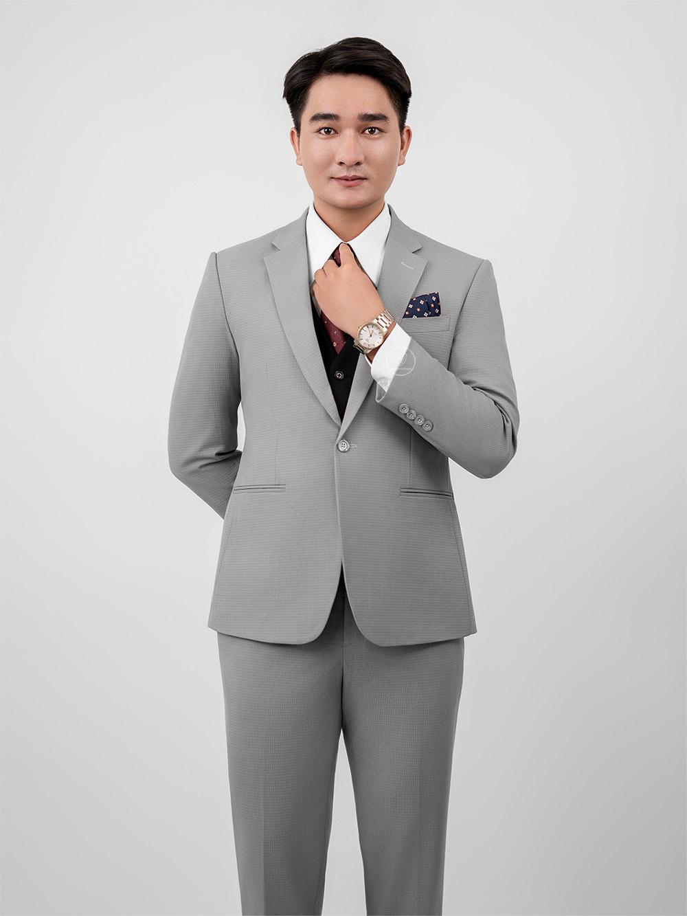 Bộ Suit Xám Trắng Caro Modern Fit TGS355